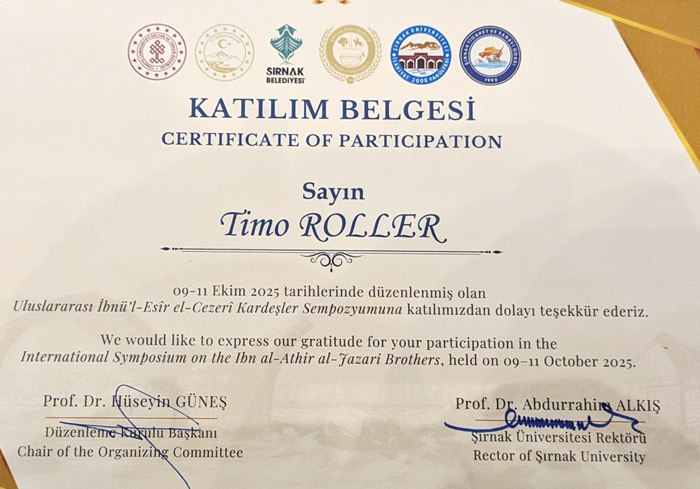 Zukünftige Updates (wie z.B. das Paper zum Vortrag über Ibn al-Athir und König Sanherib) und Kontaktinfos gibt es auf diesen Seiten.