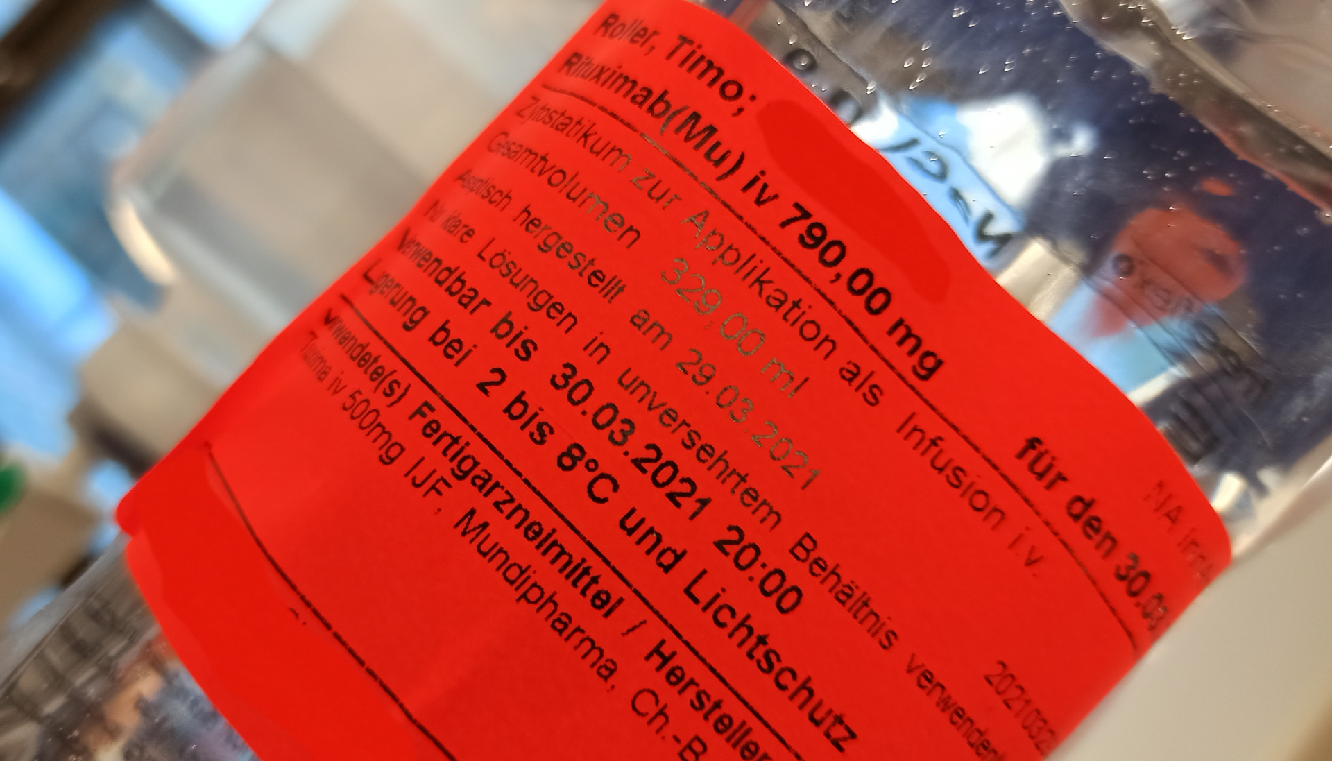 Am 30. März 2021 habe ich die erste Dosis »Rituximab« injiziert bekommen (ein »monoklonaler Antikörper«). Dies war der Auftakt zu einer 18-wöchigen Chemotherapie gegen die potenziellen Überreste eines »diffus-großzelligen B-Zell-Lymphoms«, das mir am 9. Februar 2021 operativ entfernt worden war.