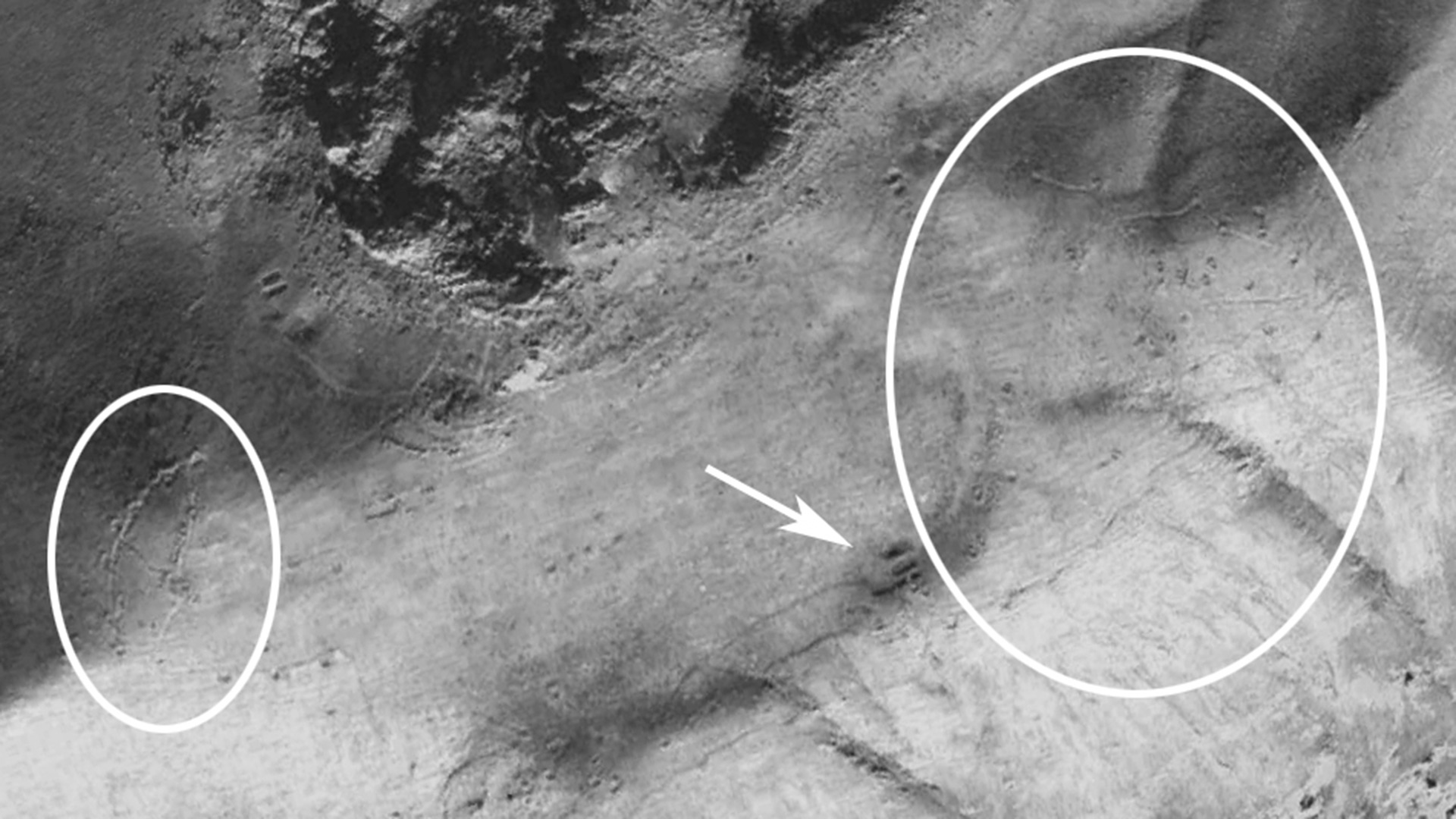 Interessant ist, dass die Spuren, die in Google Earth auf dem Gipfel des Cudi zu erkennen sind, sich sehr gut dahingehend interpretieren lassen, dass sich dort oben ein großes Kloster in Form eines Schiffes befunden haben könnte. Mit einer Länge von ca. 420 m hätte es Überreste der Arche (Länge ca. 160 m) sogar in seiner Ummauerung enthalten können. Sogar ein Kirchenschiff glaube ich unter den Umrissen zu erkennen. Die Ausrichtung dieser Kirche entspräche nicht der üblichen Ostung, sondern wäre annähernd exakt auf Jerusalem ausgerichtet.