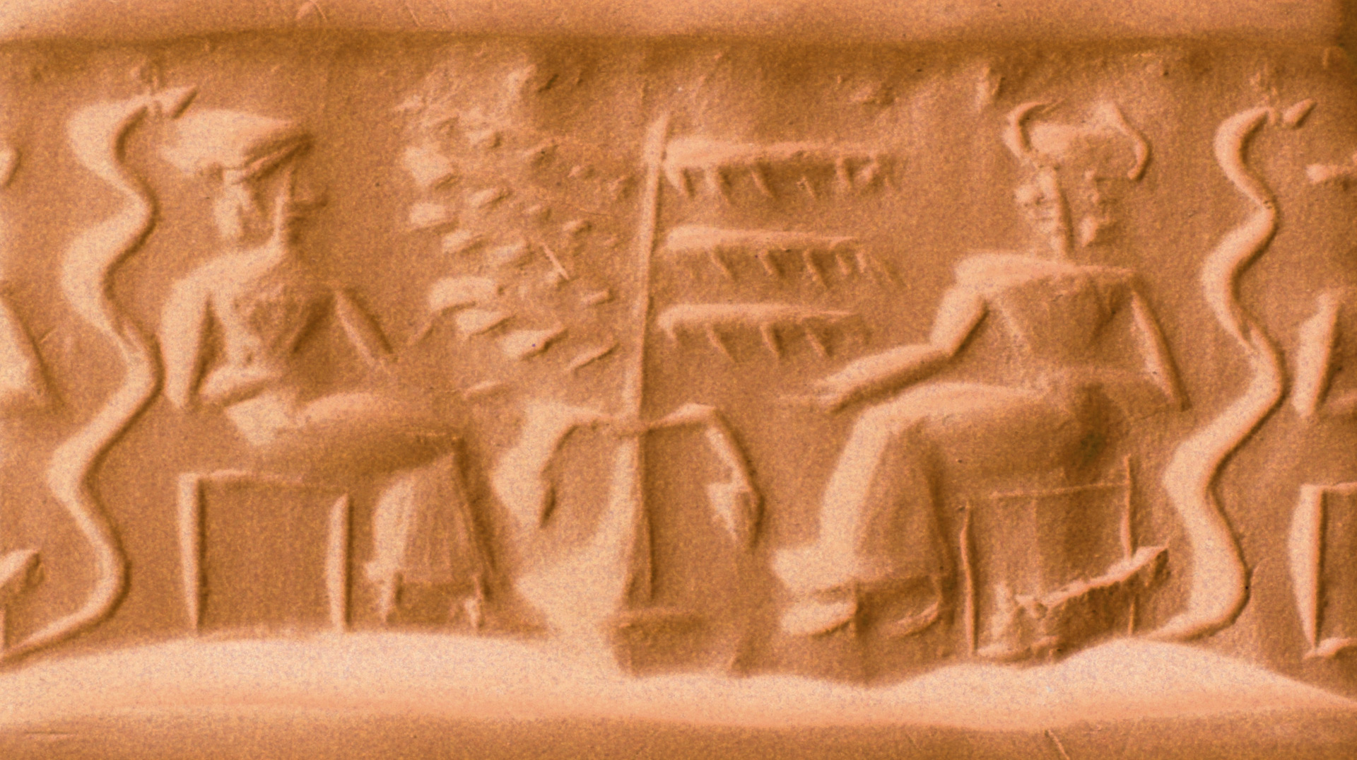 Die bekannteste mythische Urgeschichte ist sicherlich das Gilgamesch- Epos, das besonders auffällige Parallelen mit dem Sintflutbericht der Bibel aufweist. Aber es gibt auch andere, wie zum Beispiel das abgebildete Rollsiegel, das in Mesopotamien gefunden wurde und aus dem 23. Jahrhundert v.Chr. stammt, das an das in 1. Mose 2 und 3 beschriebene Paradies erinnert.